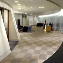 福耐Fine一款裝飾性與實用性俱佳的片材地板。600 × 600的大規格設計,逼真的花色生動再現地毯、大理石和抽象紋等紋路可為辦公室、